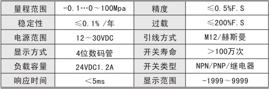 Pressure preset switching point and delay switching output