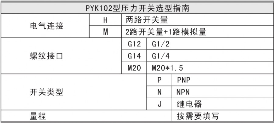 The PYK102 smart digital pressure switch is an intelligent digital pressure measurement and control product that integrates pressure measurement, display, output, and control. Stainless steel joint, diffused Silicon pressure core body, whole digital circuit board, display intuitive, simple operation, safe and reliable, switch point set on site. It is widely used in hydropower, tap water, petroleum, chemical, mechanical, hydraulic and other industries to measure and control the pressure of fluid media.
