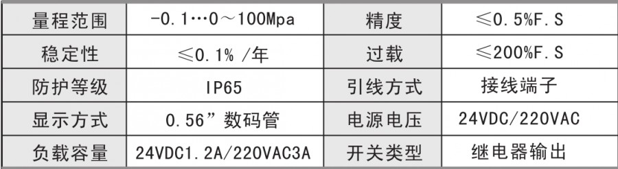 PYK104是集壓力測量、顯示、輸出、控制于一體的智能數(shù)字壓力測控產(chǎn)品。不銹鋼接頭、擴(kuò)散硅壓力芯體、全數(shù)字電路板組成,顯示直觀,操作簡單,安全可靠,開關(guān)點(diǎn)現(xiàn)場設(shè)置。廣泛應(yīng)用于水電、自來水,石油、化工、機(jī)械、液壓等行業(yè),對流體介質(zhì)的壓力進(jìn)行測量和控制。